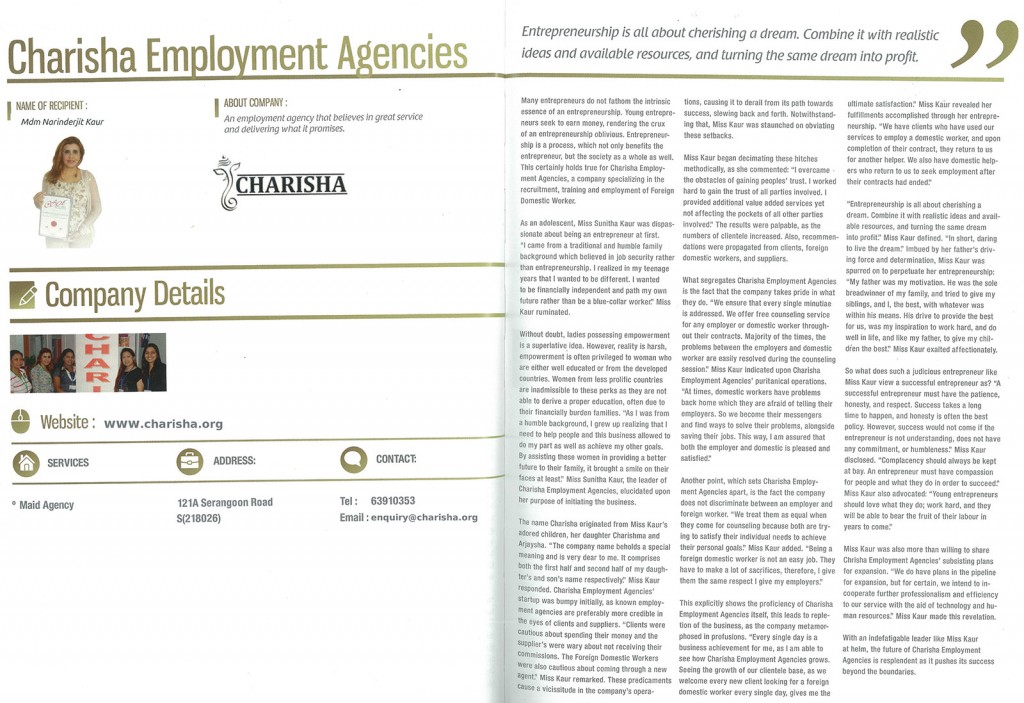 Her belief that “entrepreneurship is about cherishing a dream and turning it into purpose” is reflected in every interaction Charisha has — with helpers, clients, and overseas partners alike.
